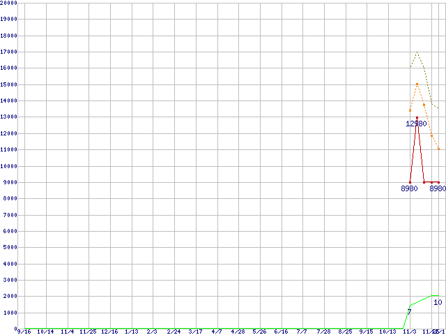 WesternDigital製その他3.5インチHDD 1TBの価格推移↑前グラフ↓次グラフ(2010年9月16日〜2011年12月1日)※このグラフは過去のデータも税率5%相当に調整した税込み相当額のグラフです。●関連グラフHDD/SSD主要製品の最安値推移HDD/SSD主要製品(最安値1万円未満)の最安値推移HDD 1TB〜1.5TB未満の最安値推移WesternDigital製その他3.5インチHDD (SATA)の最安値推移●凡例最安値(点線部は販売店未確認または未調査)平均値最高値ショップ数