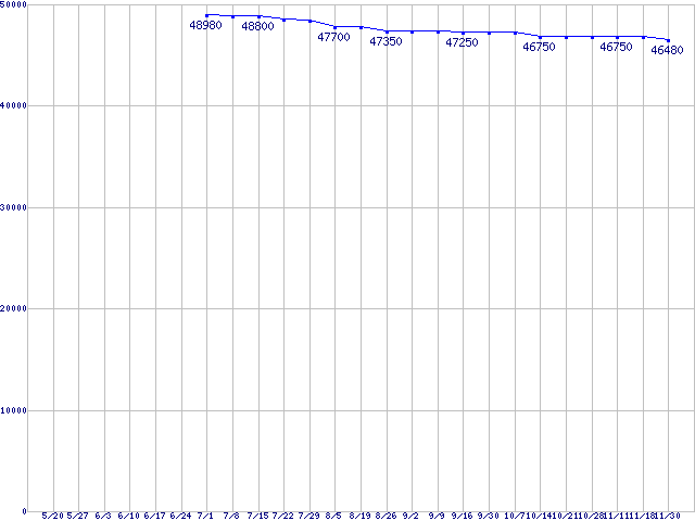 | LGA1366 (QPI 4.8GT/s,L3キャッシュ12MB,6Core,Hyper-Threading,TDP 130W)の最安値推移 |