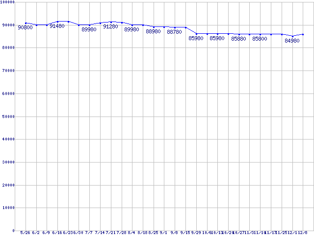 | HDD 600〜750GB未満の最安値推移 |