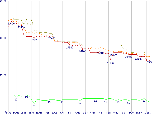 | Phenom II X6 1090T Black Edition (3.2GHz,L2 512KB×6,L3 6MB,TDP 125W)の価格推移 |