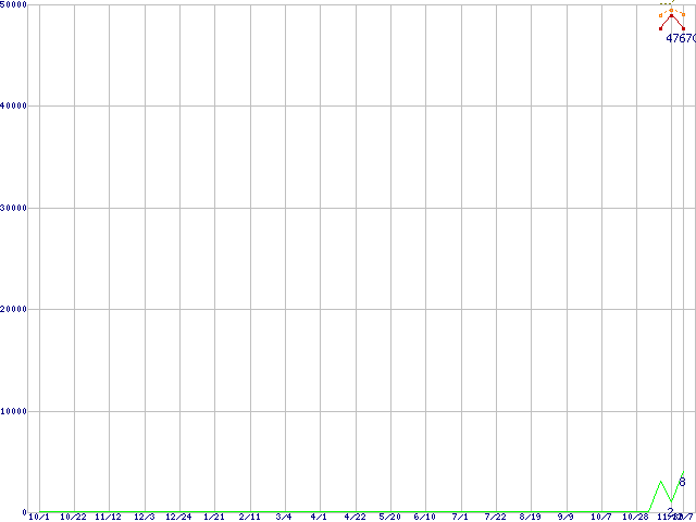 Core i7-3930K (3.20GHz,12MB)の価格推移↑前グラフ↓次グラフ(2010年10月1日〜2011年12月7日)※このグラフは過去のデータも税率5%相当に調整した税込み相当額のグラフです。●関連グラフCPU主要製品の最安値推移CPU主要製品(最安値3万円〜6万円未満)の最安値推移Intel系CPUの最安値推移LGA2011 (6Core,Hyper-Threading,TDP 130W)の最安値推移●凡例最安値(点線部は販売店未確認または未調査)平均値最高値ショップ数