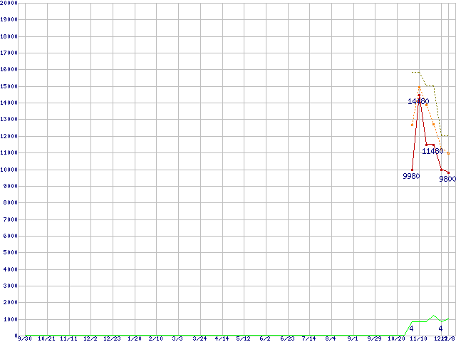 WesternDigital製その他3.5インチHDD 1.5TBの価格推移↑前グラフ↓次グラフ(2010年9月30日〜2011年12月8日)※このグラフは過去のデータも税率5%相当に調整した税込み相当額のグラフです。●関連グラフHDD/SSD主要製品の最安値推移HDD/SSD主要製品(最安値1万円未満)の最安値推移HDD 1.5TB〜2TB未満の最安値推移WesternDigital製その他3.5インチHDD (SATA)の最安値推移●凡例最安値(点線部は販売店未確認または未調査)平均値最高値ショップ数