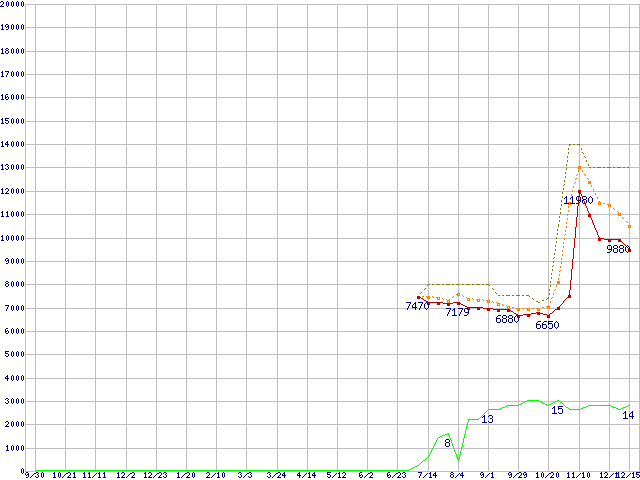 HN-M101MBB (1TB,8MB)の価格推移↑前グラフ↓次グラフ(2010年9月30日〜2011年12月15日)※このグラフは過去のデータも税率5%相当に調整した税込み相当額のグラフです。●関連グラフHDD/SSD主要製品の最安値推移HDD/SSD主要製品(最安値1万円未満)の最安値推移HDD 1TB〜1.5TB未満の最安値推移(5400rpm,3Gb/s,2.5インチ)の最安値推移●凡例最安値(点線部は販売店未確認または未調査)平均値最高値ショップ数