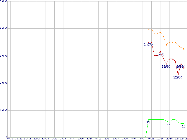 その他SandForce製コントローラ搭載SSD(6Gbps) (240GB,MLC)の価格推移↑前グラフ↓次グラフ(2010年9月30日〜2011年12月15日)※このグラフは過去のデータも税率5%相当に調整した税込み相当額のグラフです。●関連グラフHDD/SSD主要製品の最安値推移HDD/SSD主要製品(最安値2万円以上)の最安値推移HDD 200〜250GB未満の最安値推移2.5インチSSD (SSD,6Gbps,2.5インチ,SandForce SF-2200)の最安値推移●凡例最安値(点線部は販売店未確認または未調査)平均値最高値ショップ数