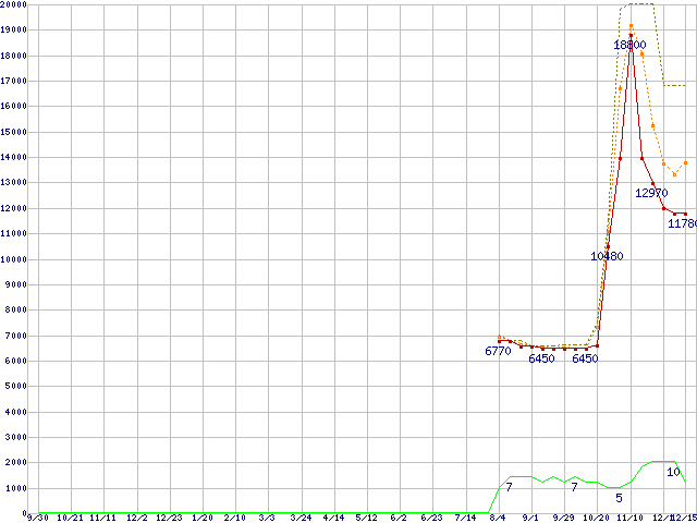 WD25EZRX (2.5TB,64MB)の価格推移↑前グラフ↓次グラフ(2010年9月30日〜2011年12月15日)※このグラフは過去のデータも税率5%相当に調整した税込み相当額のグラフです。●関連グラフHDD/SSD主要製品の最安値推移HDD/SSD主要製品(最安値1万円〜1万5千円未満)の最安値推移HDD 2.5TB〜3TB未満の最安値推移WD Caviar Green (6Gb/s)の最安値推移●凡例最安値(点線部は販売店未確認または未調査)平均値最高値ショップ数