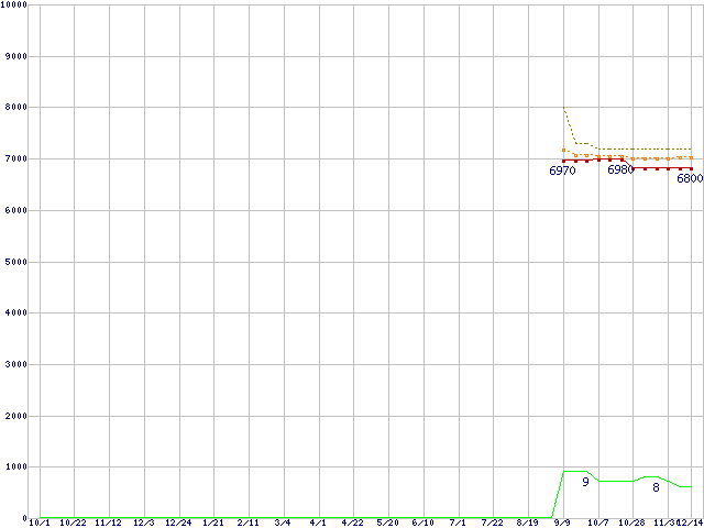 Athlon II X4 631 (2.6GHz,TDP 100W)の価格推移↑前グラフ↓次グラフ(2010年10月1日〜2011年12月14日)※このグラフは過去のデータも税率5%相当に調整した税込み相当額のグラフです。●関連グラフCPU主要製品の最安値推移CPU主要製品(最安値1万円未満)の最安値推移AMD系CPUの最安値推移Socket FM1 (Cache 4MB,4Core,)の最安値推移●凡例最安値(点線部は販売店未確認または未調査)平均値最高値ショップ数