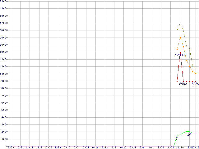 WesternDigital製その他3.5インチHDD 1TBの価格推移↑前グラフ↓次グラフ(2010年9月30日〜2011年12月15日)※このグラフは過去のデータも税率5%相当に調整した税込み相当額のグラフです。●関連グラフHDD/SSD主要製品の最安値推移HDD/SSD主要製品(最安値1万円未満)の最安値推移HDD 1TB〜1.5TB未満の最安値推移WesternDigital製その他3.5インチHDD (SATA)の最安値推移●凡例最安値(点線部は販売店未確認または未調査)平均値最高値ショップ数