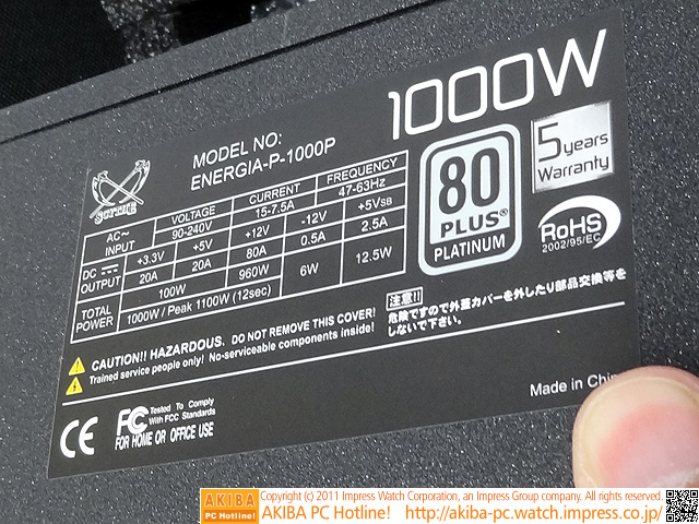 ![]() | AKIBA PC Hotline! 今週見つけた新製品:電源 [拡大画像]サイズ ENERGIA PLATINUM 1000W(ENERGIA-P-1000P) サイズ ENERGIA PLATINUM 550W(ENERGIA-P-550A) |