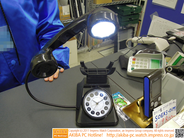 黒電話型のLEDライト発売、宙に浮く受話器… ダイヤル部分はアナログ時計