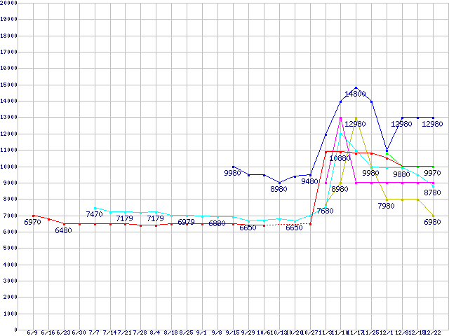 | ※製品名をクリックすると個別のグラフを表示します ※点線部は販売店が確認できなかった、または調査データがないことを示します | |
