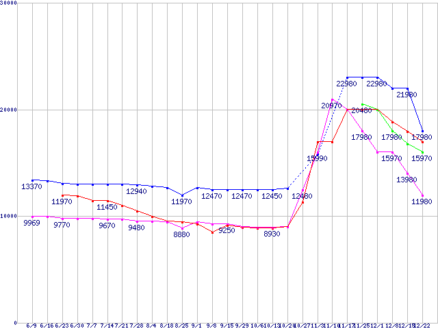 | ※製品名をクリックすると個別のグラフを表示します ※点線部は販売店が確認できなかった、または調査データがないことを示します | |