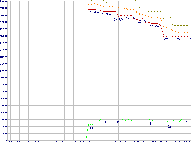 SSD 320 (120GB,MLC)の価格推移↑前グラフ↓次グラフ(2010年10月7日〜2011年12月22日)※このグラフは過去のデータも税率5%相当に調整した税込み相当額のグラフです。●関連グラフHDD/SSD主要製品の最安値推移HDD/SSD主要製品(最安値1万円〜1万5千円未満)の最安値推移HDD 100〜160GB未満の最安値推移SSD 320 (SSD,3Gbps,2.5インチ,リード270〜200MB/s・ライト220〜45MB/s)の最安値推移●凡例最安値(点線部は販売店未確認または未調査)平均値最高値ショップ数