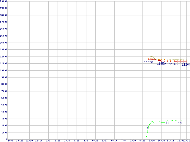Core i3-2125 (3.30GHz,TDP 65W)の価格推移↑前グラフ↓次グラフ(2010年10月8日〜2011年12月21日)※このグラフは過去のデータも税率5%相当に調整した税込み相当額のグラフです。●関連グラフCPU主要製品の最安値推移CPU主要製品(最安値1万円〜2万円未満)の最安値推移Intel系CPUの最安値推移LGA1155 (Smart Cache 3MB,Dual Core,GPU内蔵,Hyper-Threading)の最安値推移●凡例最安値(点線部は販売店未確認または未調査)平均値最高値ショップ数