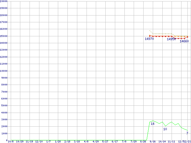 Core i5-2320 (3.00GHz,TDP 95W)の価格推移↓次グラフ(2010年10月8日〜2011年12月21日)※このグラフは過去のデータも税率5%相当に調整した税込み相当額のグラフです。●関連グラフCPU主要製品の最安値推移CPU主要製品(最安値1万円〜2万円未満)の最安値推移Intel系CPUの最安値推移LGA1155 (Smart Cache 6MB,Quad Core,GPU内蔵)の最安値推移●凡例最安値(点線部は販売店未確認または未調査)平均値最高値ショップ数