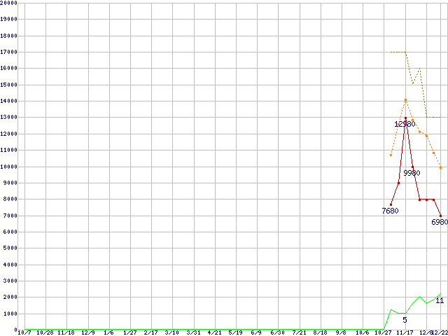 日立製その他3.5インチHDD 1TBの価格推移↑前グラフ↓次グラフ(2010年10月7日〜2011年12月22日)※このグラフは過去のデータも税率5%相当に調整した税込み相当額のグラフです。●関連グラフHDD/SSD主要製品の最安値推移HDD/SSD主要製品(最安値1万円未満)の最安値推移HDD 1TB〜1.5TB未満の最安値推移日立製その他3.5インチHDD (SATA)の最安値推移●凡例最安値(点線部は販売店未確認または未調査)平均値最高値ショップ数