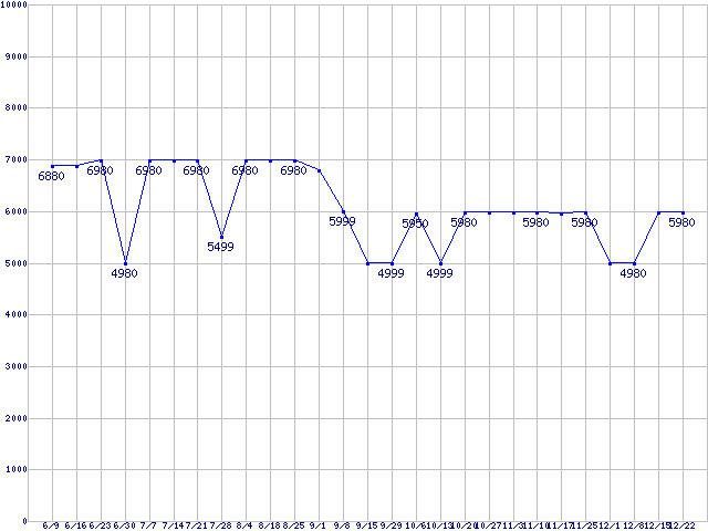 | 2.5インチSSD (SSD,3Gbps,2.5インチ)の最安値推移 |