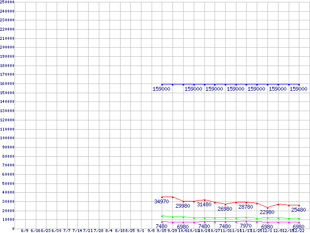 | 2.5インチSSD (SSD,6Gbps,2.5インチ,SandForce SF-2200)の最安値推移 |