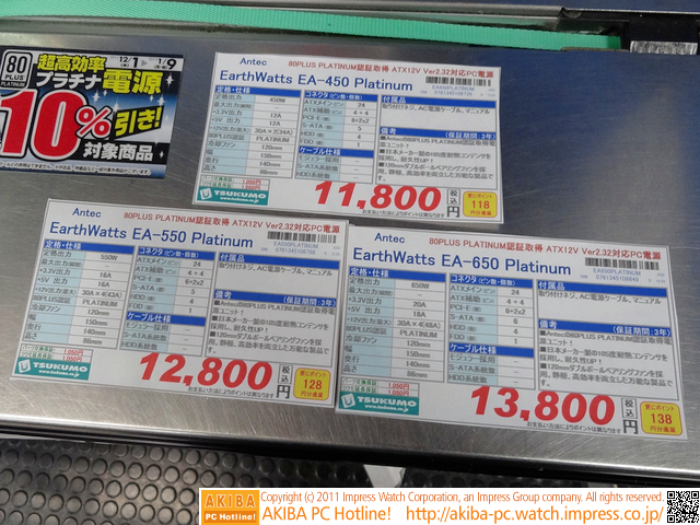 安値の80 PLUS Platinum電源がAntecからも Platinum最小の450W品も