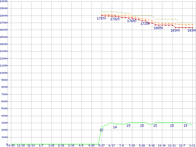 Core i5-2405S (2.50GHz,TDP 65W)の価格推移↑前グラフ↓次グラフ(2010年10月29日〜2012年1月11日)※このグラフは過去のデータも税率5%相当に調整した税込み相当額のグラフです。●関連グラフCPU主要製品の最安値推移CPU主要製品(最安値1万円〜2万円未満)の最安値推移Intel系CPUの最安値推移LGA1155 (Smart Cache 6MB,Quad Core,GPU内蔵)の最安値推移●凡例最安値(点線部は販売店未確認または未調査)平均値最高値ショップ数