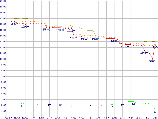| Phenom II X4 970 Black Edition (3.5GHz,L2 512KB×4,L3 6MB,TDP 125W)の価格推移 |