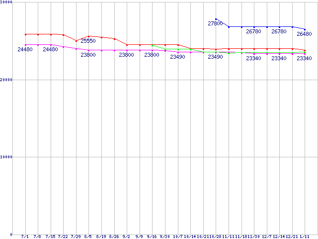 | LGA1155 (Smart Cache 8MB,Quad Core,GPU内蔵,Hyper-Threading,TDP 95W)の最安値推移 |