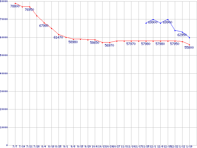 | HDD 500〜600GB未満の最安値推移 |