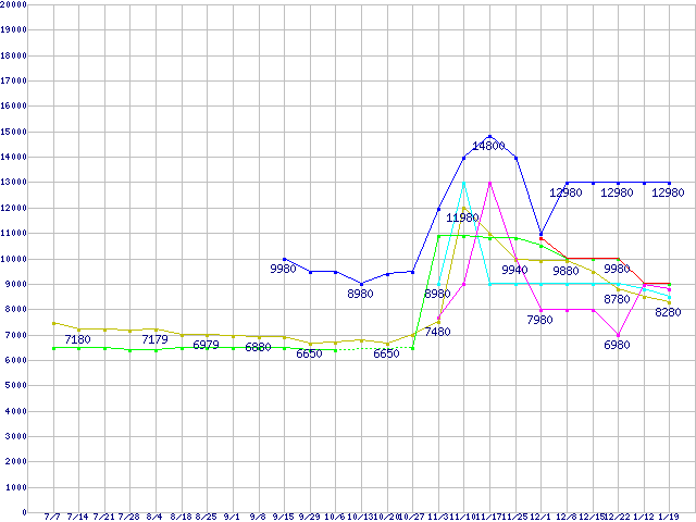 | ※製品名をクリックすると個別のグラフを表示します ※点線部は販売店が確認できなかった、または調査データがないことを示します | |
