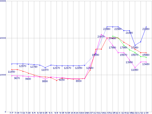 | ※製品名をクリックすると個別のグラフを表示します ※点線部は販売店が確認できなかった、または調査データがないことを示します | |