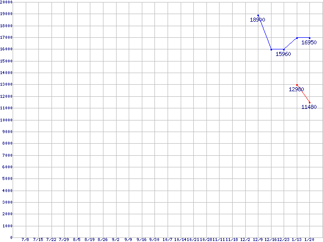 | メモリ主要製品(最安値1万円以上)の最安値推移 |