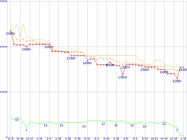 | Phenom II X6 1090T Black Edition (3.2GHz,L2 512KB×6,L3 6MB,TDP 125W)の価格推移 |