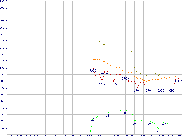 その他6Gbps対応SSD (64GB,MLC)の価格推移↑前グラフ↓次グラフ(2010年11月4日〜2012年1月19日)※このグラフは過去のデータも税率5%相当に調整した税込み相当額のグラフです。●関連グラフHDD/SSD主要製品の最安値推移HDD/SSD主要製品(最安値1万円未満)の最安値推移HDD/SSD 60GB〜80GB未満の最安値推移2.5インチSSD (SSD,6Gbps,2.5インチ)の最安値推移●凡例最安値(点線部は販売店未確認または未調査)平均値最高値ショップ数