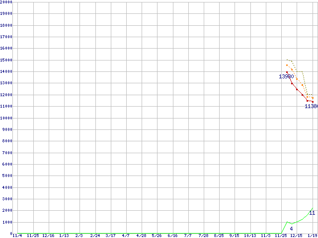 ST2000DM001 (2TB,64MB)の価格推移↑前グラフ↓次グラフ(2010年11月4日〜2012年1月19日)※このグラフは過去のデータも税率5%相当に調整した税込み相当額のグラフです。●関連グラフHDD/SSD主要製品の最安値推移HDD/SSD主要製品(最安値1万円〜1万5千円未満)の最安値推移HDD 2TB〜2.5TB未満の最安値推移Barracuda (7200rpm,6Gbps)の最安値推移●凡例最安値(点線部は販売店未確認または未調査)平均値最高値ショップ数