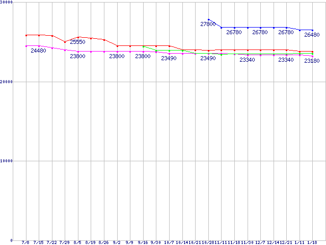 | ※製品名をクリックすると個別のグラフを表示します ※点線部は販売店が確認できなかった、または調査データがないことを示します | |