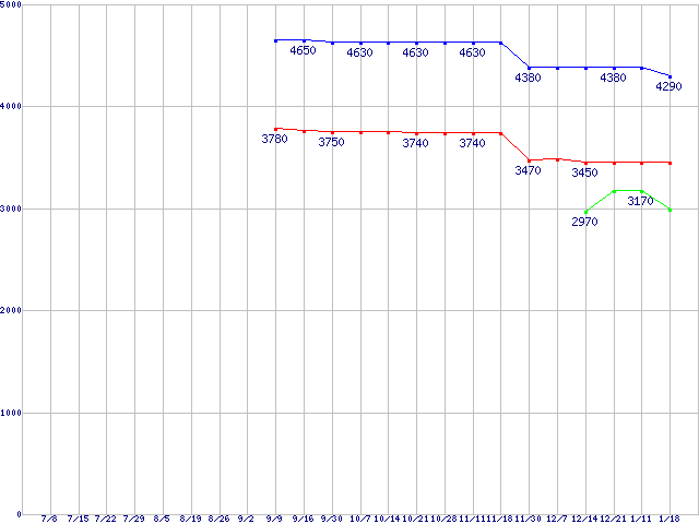 | ※製品名をクリックすると個別のグラフを表示します ※点線部は販売店が確認できなかった、または調査データがないことを示します | |