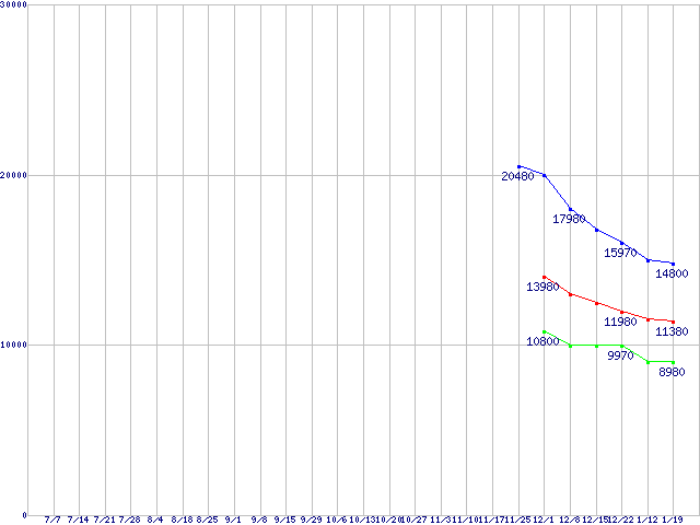 | Barracuda (7200rpm,6Gbps)の最安値推移 |