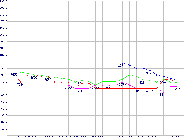 | ※製品名をクリックすると個別のグラフを表示します ※点線部は販売店が確認できなかった、または調査データがないことを示します | |