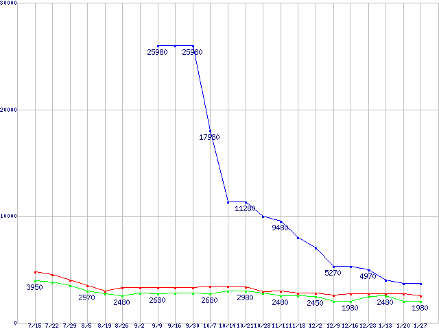 | ※製品名をクリックすると個別のグラフを表示します ※点線部は販売店が確認できなかった、または調査データがないことを示します | |