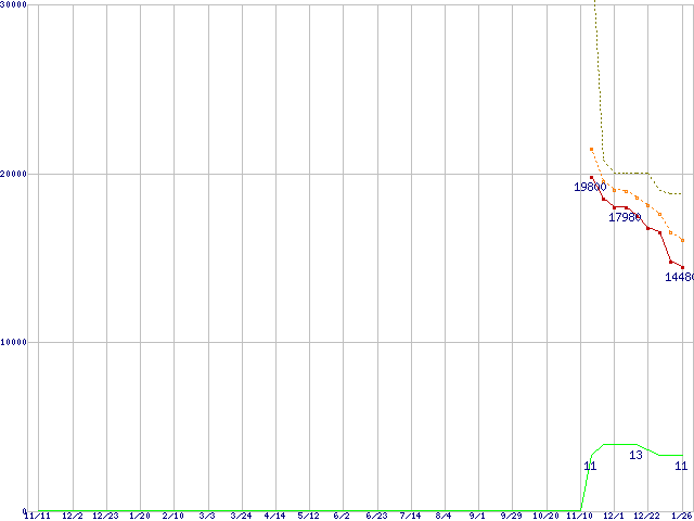 MZ-7PC128 (128GB,MLC)の価格推移↑前グラフ↓次グラフ(2010年11月11日〜2012年1月26日)※このグラフは過去のデータも税率5%相当に調整した税込み相当額のグラフです。●関連グラフHDD/SSD主要製品の最安値推移HDD/SSD主要製品(最安値1万円〜1万5千円未満)の最安値推移HDD 100〜160GB未満の最安値推移SSD 830 (SSD,6Gb/s,2.5インチ,リード520MB/s・ライト400〜160MB/s)の最安値推移●凡例最安値(点線部は販売店未確認または未調査)平均値最高値ショップ数