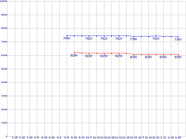 | ※製品名をクリックすると個別のグラフを表示します ※点線部は販売店が確認できなかった、または調査データがないことを示します |