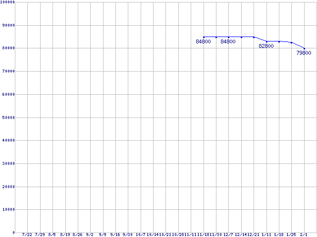 | CPU主要製品(最安値6万円以上)の最安値推移 |