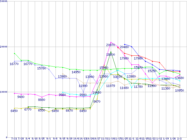 | ※製品名をクリックすると個別のグラフを表示します ※点線部は販売店が確認できなかった、または調査データがないことを示します | |