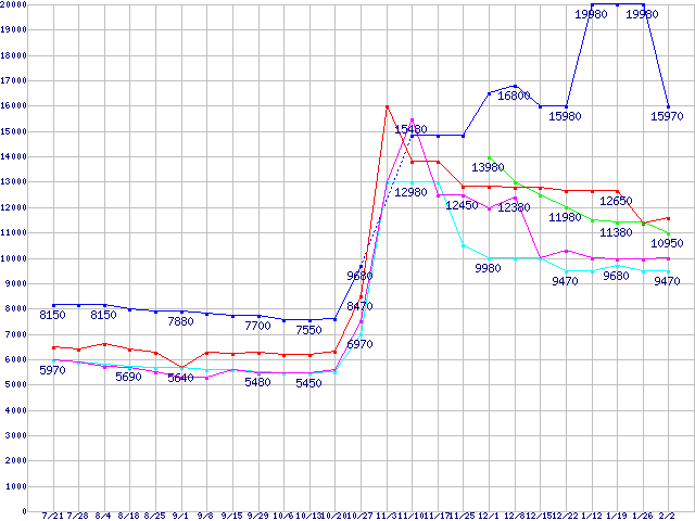 | ※製品名をクリックすると個別のグラフを表示します ※点線部は販売店が確認できなかった、または調査データがないことを示します | |