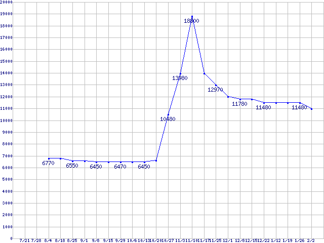 | ※製品名をクリックすると個別のグラフを表示します ※点線部は販売店が確認できなかった、または調査データがないことを示します |