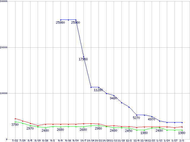 | ※製品名をクリックすると個別のグラフを表示します ※点線部は販売店が確認できなかった、または調査データがないことを示します | |