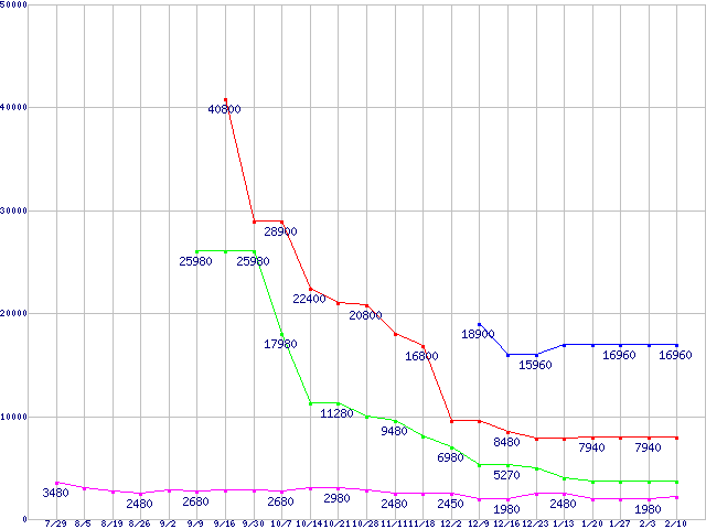 | ※製品名をクリックすると個別のグラフを表示します ※点線部は販売店が確認できなかった、または調査データがないことを示します | |
