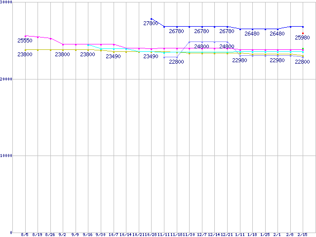 | ※製品名をクリックすると個別のグラフを表示します ※点線部は販売店が確認できなかった、または調査データがないことを示します | |