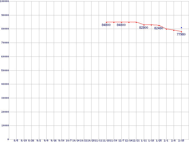 | CPU主要製品(最安値6万円以上)の最安値推移 |
