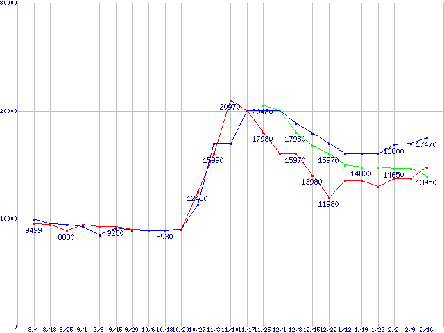 | ※製品名をクリックすると個別のグラフを表示します ※点線部は販売店が確認できなかった、または調査データがないことを示します | |