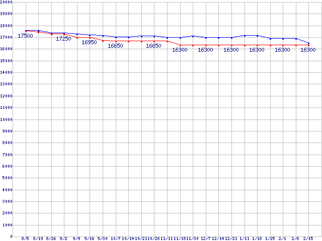 | ※製品名をクリックすると個別のグラフを表示します ※点線部は販売店が確認できなかった、または調査データがないことを示します |