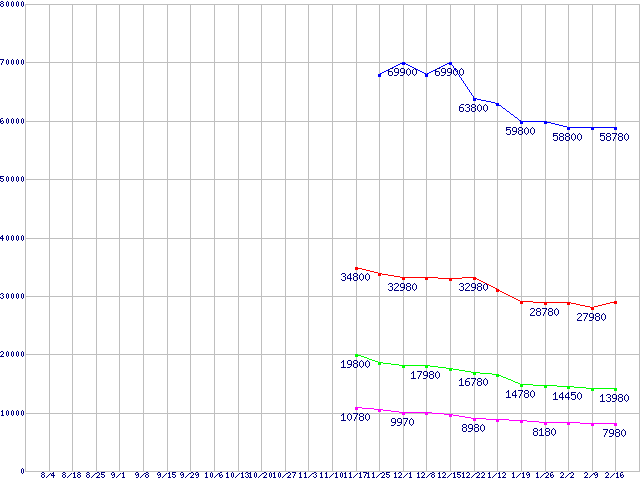 | ※製品名をクリックすると個別のグラフを表示します ※点線部は販売店が確認できなかった、または調査データがないことを示します | |